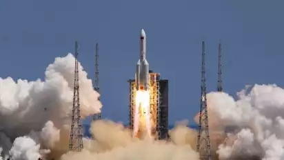 Roket Long March 5B diluncurkan dari Wenchang Spacecraft Launch Site, Wenchang, China, pada 24 Juli 2022 untuk mengirim modul Wentian seberat 23.000 kilogram (kg) ke Stasiun Luas Angkasa Tiangong