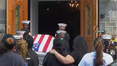 Sebuah prosesi pengantaran jenazah Sersan Johanny Rosario Pichardo digelar dengan melibatkan sejumlah pihak, termasuk Marinir, polisi Lawrence dan negara bagian Massachusetts, petugas pemadam kebakaran dan pejabat kota Lawrence.