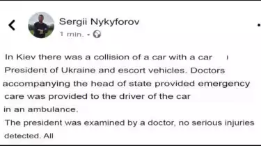 Meski Sergii tidak menjelaskan kapan kejadian kecelakaan tersebut, yang pasti mobil presiden bertabrakan dengan kendaraan lain.