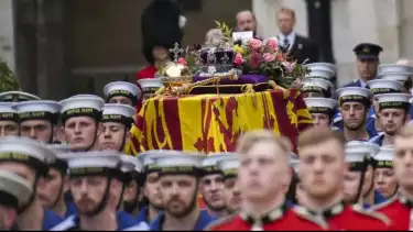 Pengiring peti mati ratu diketahui berjumlah 142 personel, dan peti mati Ratu Elizabeth II diselimuti dengan bendera The Royal Standard.