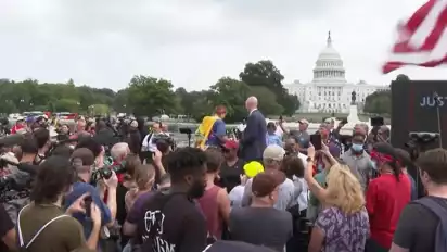 Amerika - Ratusan demonstran berkumpul menggelar aksi unjuk rasa di depan gedung Capitol, Washington, D.C., Amerika Serikat, pada Sabtu (18/9) pagi waktu setempat.