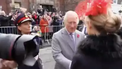 Saat polisi menahan pria itu, Raja Charles tampak tidak bergeming dan terus menyapa orang banyak. Nampak pula Wali Kota setempat yang menyambutnya mulai dari gerbang kota.