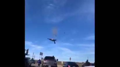 Video amatir yang diunggah akun twitter @James T.Yoder memperlihatkan detik-detik dua pesawat bertabrakan dan terlihat reruntuhan pesawat yang remuk di area berumput di dalam perimeter bandara, sekitar pukul 13.20 waktu setempat.