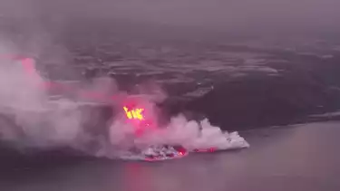 Aliran lava pijar dari gunung berapi Cumbre Vieja, hingga Rabu waktu setempat masih terus bergejolak. Gunung berapi yang berada di la Palma itu terus mengeluarkan uap putih setelah mencapai area laut.