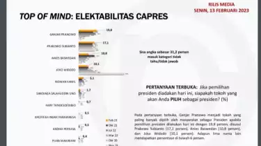 Sedangkan asil survei Populi Center menyebutkan Ganjar Pranowo pada Februari 2023 ini menjadi tokoh dengan elektabilitas tertinggi untuk calon presiden pada Pemilu 2024.