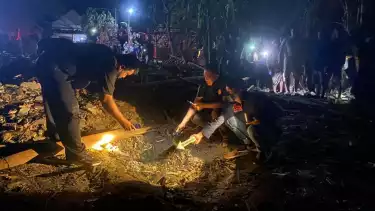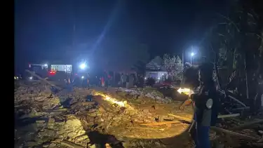 Rumah milik sudarman (65) rata dengan tanah, diduga akibat ledakan petasan. Yang menyebabkan juga 4 orang meninggal sejauh ini hingga bagian tubuh korban hancur berserakan di sekitar lokasi.