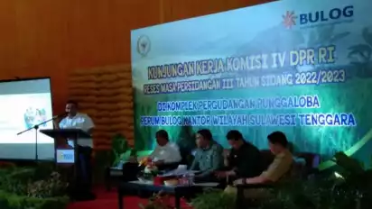 Direktur Keuangan Perum Bulog Bagya Mulyanto mendampingi Komisi IV DPR RI melakukan kunjungan kerja reses masa persidangan III tahun 2022/2023 di komplek pergudangan Punggaloba, Kota Kendari, Sulawesi Tenggara.
