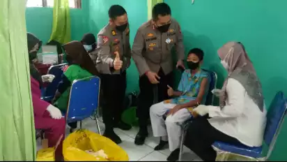 Vaksinasi pelajar terus digencarkan oleh pihak pihak Polres Kotawaringin Timur (Kotim), kali ini sasarannya para pelajar SMPN 9 Sampit.