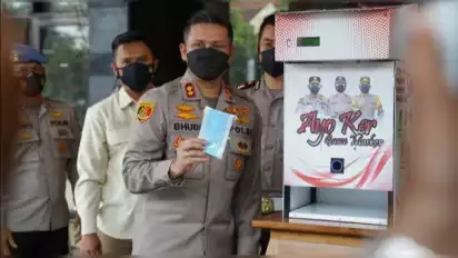 Malang,Jawa Timur- Menggandeng Fakultas Teknik Universitas Brawijaya, Kepolisian Resor Kota Malang, Jawa Timur, membuat trobosan baru di tengan pandemi dengan menciptakan dispenser masker.