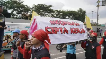 Keranda Mayat Berterbangan di DPR, Buruh Minta Keadilan dengan Tolak Perppu Ciptaker