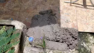 “Itu dicor memang ubin lama di bawah tangga, corannya masih basah. Kemudian ditumpuk lagi dengan kerikil,” sambungnya.