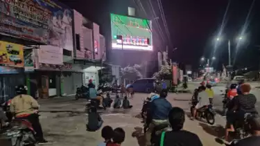 Sentani, Papua - Sentani, Kabupaten Sentani, Papua, memanfaatkan videotron di pinggir jalan untuk menyaksikan penutupan Pekan Olahraga Nasional (PON) XX Papua, Jumat (15/10/2021) malam.