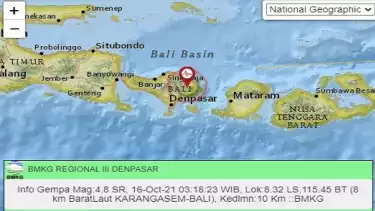 Gempa bumi berkekuatan M 4.8 mengguncang wilayah Bali dan Lombok. BMKG menyebutkan, Episenter terletak pada koordinat 8,32° LS; 115,45° BT, atau tepatnya berlokasi di darat pada jarak 8 km barat laut Karangasem, Bali pada kedalaman 10 km. (act)