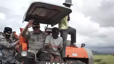 Maros, tvOnenews.com - Inspektur Jenderal Kementerian Pertanian (Irjen Kementan), Jan Samuel Maringka memantau jalannya panen raya padi di Kelurahan Taroada, Kecamatan Turikale, Kabupaten Maros, Sulawesi Selatan. Kegiatan ini merupakan rangkaian kerja pemerintah dalam menambah jumlah ketersediaan beras nasional terutama jelang puasa dan lebaran mendatang.
