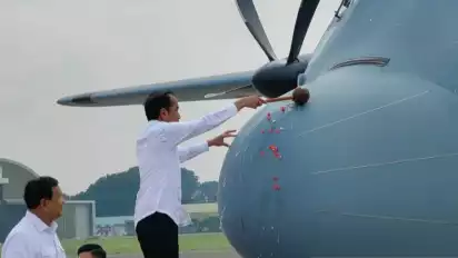 "Yang kita terima pada pagi hari ini pesawat yang sangat canggih. Saya sudah masuk, bisa mengangkut kalau pasukan yang komplet dengan parasut penerjun bisa 98, tapi kalau hanya pasukan (saja) bisa 128," kata Jokowi.