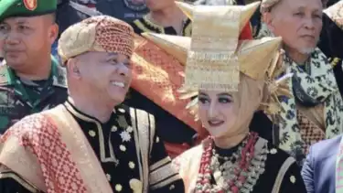 2. Istri Teddy Minahasa memakai baju adat Minangkabau.