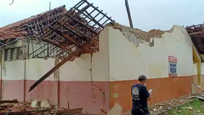 "Satu ruang kelas. Tadi pagi, Jam 07.15 WIB ambruknya," kata kepala sekolah SDN Rengasdengklok Selatan VI, Yeti Herawati, Senin (18/10/2021).
