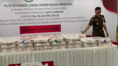 Jakarta, tvOnenews.com - Kejaksaan Negeri Jakarta Pusat (Kejari Jakpus) menyetorkan uang Rp51,1 miliar terkait kasus pemalsuan dokumen dan pencucian uang terpidana Leo Chandra. Barang bukti uang Rp51,1 miliar tersebut disetorkan ke kas negara sebagai upaya pemulihan kerugian negara.