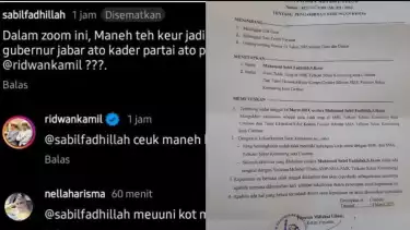 "Dalam zoom ini, maneh teh keur jadi gubernur jabar ato kader partai atao pribadi @ridwankamil? (Dalam zoom ini, kamu (berperan) lagi jadi Gubernur atau kader partai atau pribadi," tulis Sabil di kolom komentar akun Instagram Ridwan Kamil, Rabu 15 Maret 2023.