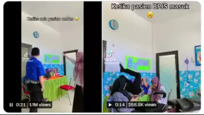 Dalam video pertama, terlihat tiga orang nakes berjoget-joget saat pasien umum masuk ke layanan kesehatan. Sementara di video kedua, tiga orang nakes duduk bermalas-malasan saat pasien BPJS masuk layanan kesehatan.