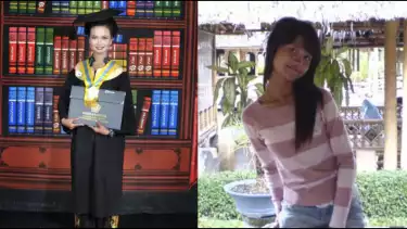7. Terakhir, potret Ayu Indraswari yang merayakan wisuda. Ayu yang memakai toga tampak tersenyum bahagia.