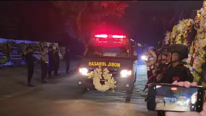 Jakarta, tvOnenews.com - Jenazah almarhumah Istri Wakapolri Komjen Gatot Eddy Pramono, Widi Astutik binti Miswandoko, tiba di rumah Duka yang berada di kawasan Kembangan, Jakarta Barat, Sabtu (8/5/2023) dini hari pukul 03.27 WIB.