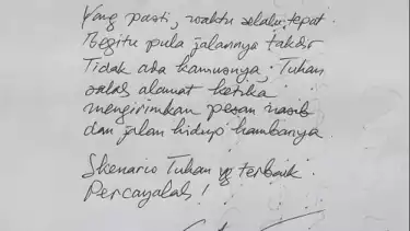 "Itu benar dan asli tulisan tangan Mas AU. Dia tulis tadi sore hari setelah salat ashar," kata Darmadi sambil menunjukkan surat tersebut saat ditemui tvOnenews.com di Lapas Sukamiskin Bandung, Senin (3/4/2023) lalu.