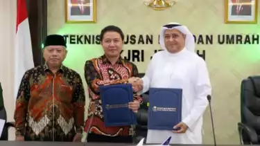 Jakarta, tvonenews.com - Kementerian Agama (Kemenag) melalui Dirjen Penyelenggaraan Haji dan Umrah (PHU) Hilman Latief dan General Manager Hajj and Umrah Revenue Management and Sales Amer Al Ghamdi melakukan penandatanganan kerja sama pengangkutan jamaah haji Indonesia 1444/2023.