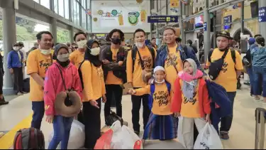 Semarak Mudik Lebaran 2023, Keluarga ini Kompak Pakai Kaos Kembar Antisipasi Anak Hilang