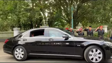 Pantauan tvOnenews, Ganjar dan Jokowi menaiki satu mobil yang sama yaitu mobil dinas Jokowi merek Mercy berpelat nomor B 1287 RFS.