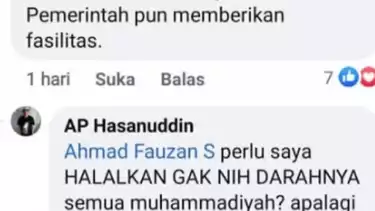 Setelah komentarnya viral, melalui surat pernyataannya AP Hasanuddin mengaku komentar itu dibuat secara sadar yang dilandasi rasa emosi dan ketidakbijaksanaan saat melihat akun media sosial milik pimpinannya yang diserang oleh sebagian besar warga Muhammadiyah yang tidak terima atas unggahan pada akun tersebut. (ant/nsi)