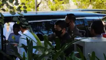 Jan Ethes mengenakan baju kaos berwarna putih, terlihat beberapa kali melempar senyum hangat kepada warga yang menunggu Presiden Joko Widodo dari luar kawasan Puncak Waringin Labuan Bajo.