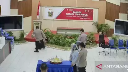 Dalam video berdurasi 43 detik tersebut, terlihat ada seorang anggota polisi yang sedang menggeser sebuah meja, kemudian tiba-tiba Kapolres Nunukan datang dan menendang korban di bagian perut beberapa kali hingga korban tersungkur. Ant/Ner