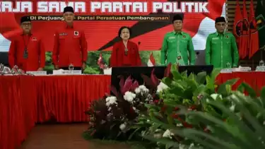 Sebelumnya, Hasto menyambut kedatangan Pelaksana Tugas (Plt.) Ketua Umum PPP Muhamad Mardiono beserta rombongan petinggi PPP