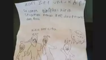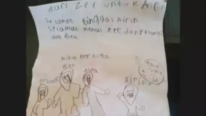 "Tulisannya, 'Dari Zee untuk Airin. Selamat tinggal Airin. Selamat kenal Zee dan Pelangi dan Alea'," kata Aldhino.