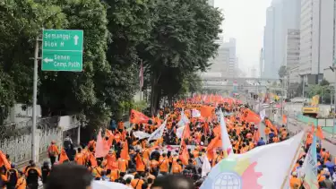 Jakarta, tvonenews.com - Ratusan ribu buruh tumpah ruah di jalanan ibu kota DKI Jakarta pada peringatan hari buruh internasional (May Day) yang jatuh pada 1 Mei. Berbagai tuntutan disuarakan oleh buruh untuk perbaikan kesejahteraan buruh di Indonesia.