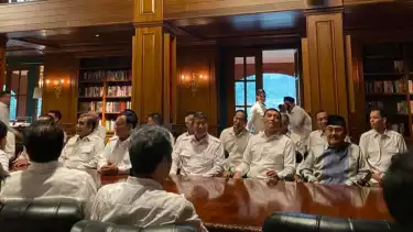 Sebagai informasi, Wiranto dan rombongan tiba di Hambalang pukul 17.23 WIB dengan naik mobil bus. Dia dan rombongan kompak memakai kemeja putih dan celana berwarna krem seperti kader Gerindra.