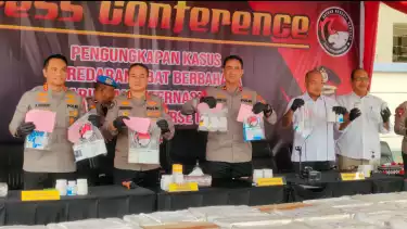 "Polres Metro Jakarta Barat dan PMJ Direktorat Reserse Narkoba mengungkapkan kejahatan narkotika atau obat-obat terlarang atau izin edar ilegal. Pengungkapan obat ilegal jaringan internasional India, Singapura, Indonesia, ada 37.418.000 butir," katanya di Polres Metro Jakarta Barat, Rabu (3/5/2023).