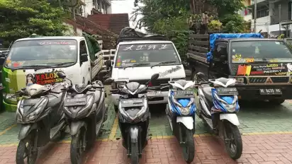 Selain para pelaku polisi juga mengamankan barang bukti berupa beberapa sepeda motor curian serta 3 unit mobil pengangkut.