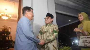 Semua Ketum parpol yang datang ke rumah JK itu mengemas pertemuan tersebut dalam sebuah agenda silaturahmi. Mereka adalah Ketum Gerindra Prabowo Subianto, Ketum Golkar Airlangga Hartarto, dan Ketum Partai Kebangkitan Bangsa (PKB) Muhaimin Iskandar atau Cak Imin. (ant/ebs)