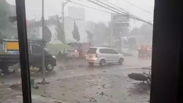 Seorang warga yang berada di sekitar Perumahan Puri Araya, Desa Cicadas, Riski Eka menceritakan bahwa hujan disertai angin kencang itu berlangsung sekitar 20 menit.