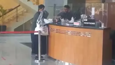 Setelah masuk ke gedung Merah Putih KPK, Hariyanto langsung mengurus administrasi di meja resepsionis.