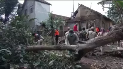 “Akibat kejadian kemarin lumayan parah ini, dapur total hancur, kemudian dua kamar seluruh genting dan temboknya rusak. Karena kondisi bangunannya juga rawan, maka kita bongkar sekalian. Pohon yang menimpa itu berdiameter 50 dan panjang 15 meter.” kata Heri Kurniawan, Camat Wonoasri.