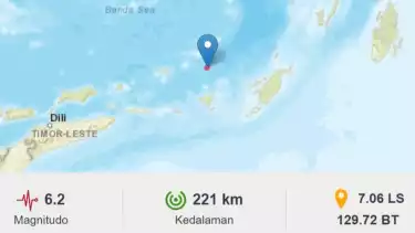 Kedalaman gempa magnitudo 6.2 di Maluku ini terjadi di kedalaman 221 km.