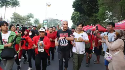 "Yang antusias (lari pagi,red) saya, bukan masyarakat. Sebab, kita bangun pagi mulai di hotel sampai ke sini lumayan, ya," ujar Ganjar Pranowo.