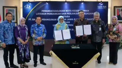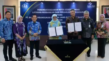 Jakarta, tvOnenews.com - PT Bank Pembangunan Daerah Jawa Barat dan Banten Tbk (bank bjb) bersama Universitas Trisakti menandatangani Nota Kesepahaman tentang Pendidikan, Penelitian, dan Penandatangan Perjanjian Kerja Sama (PKS) tentang Pemberian Fasilitas Kredit Ritel, Bantuan Penagihan, dan Pembayaran Kolektif Angsuran Kredit Ritel.