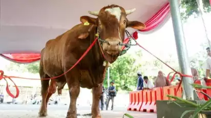 Dari dua ekor sapi itu, satu ekor sapi milik Presiden RI Jokowi. Namun, simbolisasi penyerahan diwakilkan oleh Ma’ruf Amin.