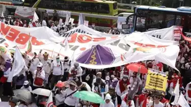 Mereka menggelar aksi demonstrasi bertajuk "Aksi Selamatkan Kesehatan Rakyat Indonesia" sebagai bentuk respons penolakan pengesahan RUU Omnibus Law Kesehatan menjadi UU yang rencananya akan disahkan DPR RI dalam rapat paripurna hari ini.