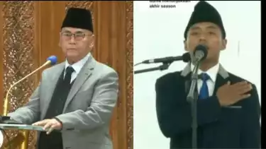 Panji Gumilang (kiri) dan gaya azan yang berbeda dari Ponpes Al-Zaytun (kanan).
