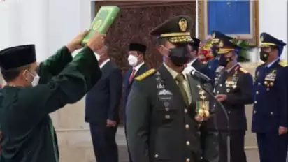 Pelantikan Andika sekaligus memberhentikan dengan hormat Marsekal Hadi Tjahjanto yang akan memasuki masa pensiun.